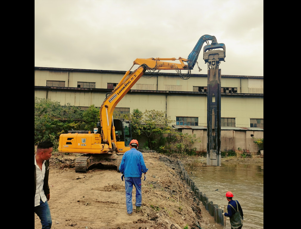 El conductor de pila de VIBRA puede ser uso para los propósitos multi que llenan el trabajo incluyendo la conducción de pila de hoja plástica. Tiene tipos múltiples de llenar trabajos incluyendo el terraplén del arroyo, la fundación de la casa, la red municipal, el puente y otros campos de construcción. FV-250 uno de los martinetes populares en la industria con la capacidad de la conducción de pila de 10 metros conveniente para el tipo medio excavador que se extiende de 20 a 30 tonelada. ¡Fácil actuar y confiable, bastante capaz de conducir la hoja del cemento, la placa de acero, el tubo de acero, H de acero, el conductor de pila de madera del etc. VIBRA FV250 cabido con el excavador de Lonking para conducir pilas de hoja plásticas de 9 metros cerca se satisface un canal, cliente haciendo que FV250 como su satisfaga sus requisitos al mismo tiempo para asegurar más beneficios!