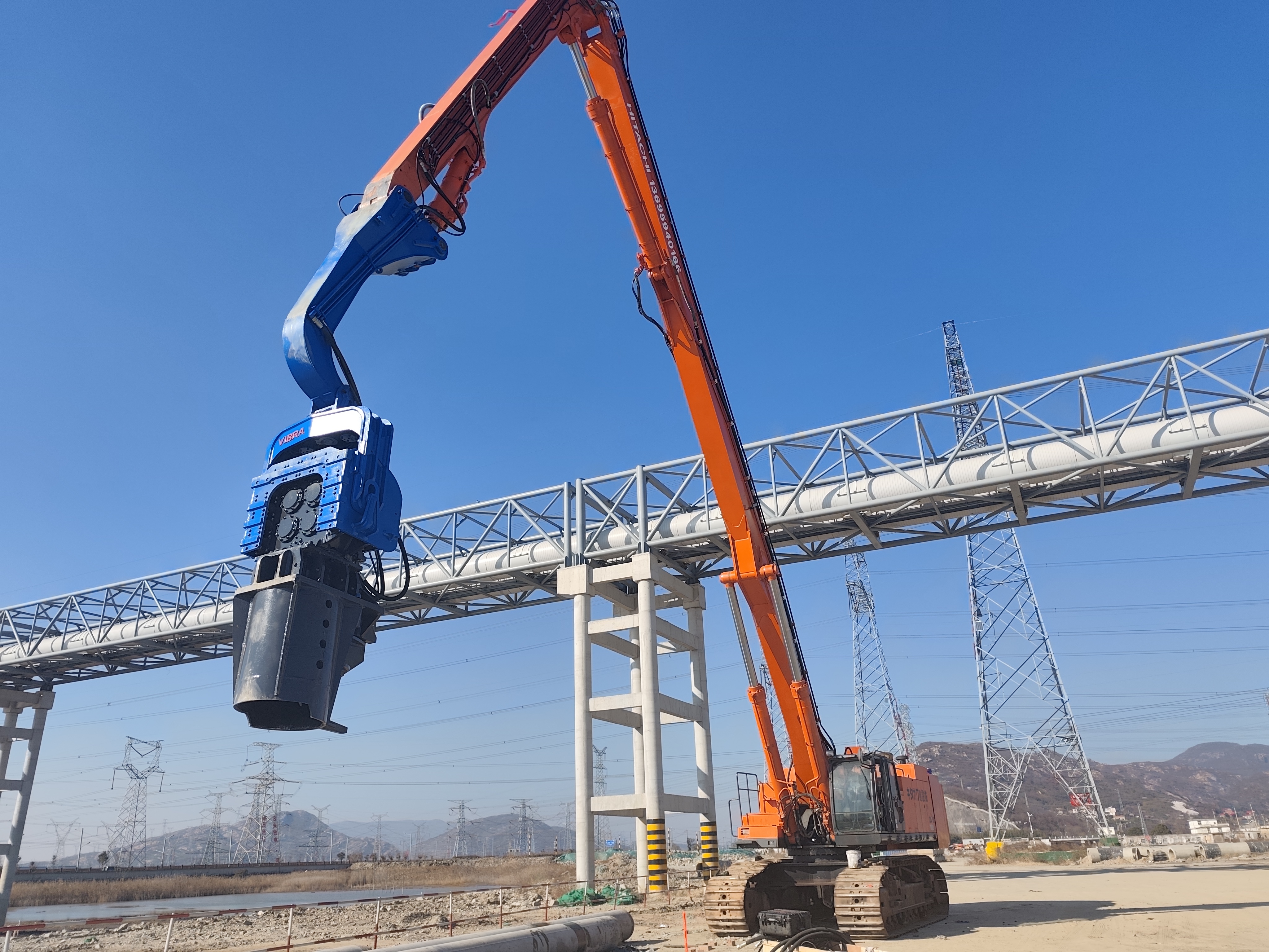 Este hincador de pilotes está diseñado para ser compatible con excavadoras de 48-52 toneladas, lo que ofrece versatilidad y flexibilidad en diferentes entornos de proyectos. El FV-500 puede hincar pilotes de hasta una longitud máxima de 18 metros, lo que lo hace adecuado para una amplia gama de necesidades de construcción.
