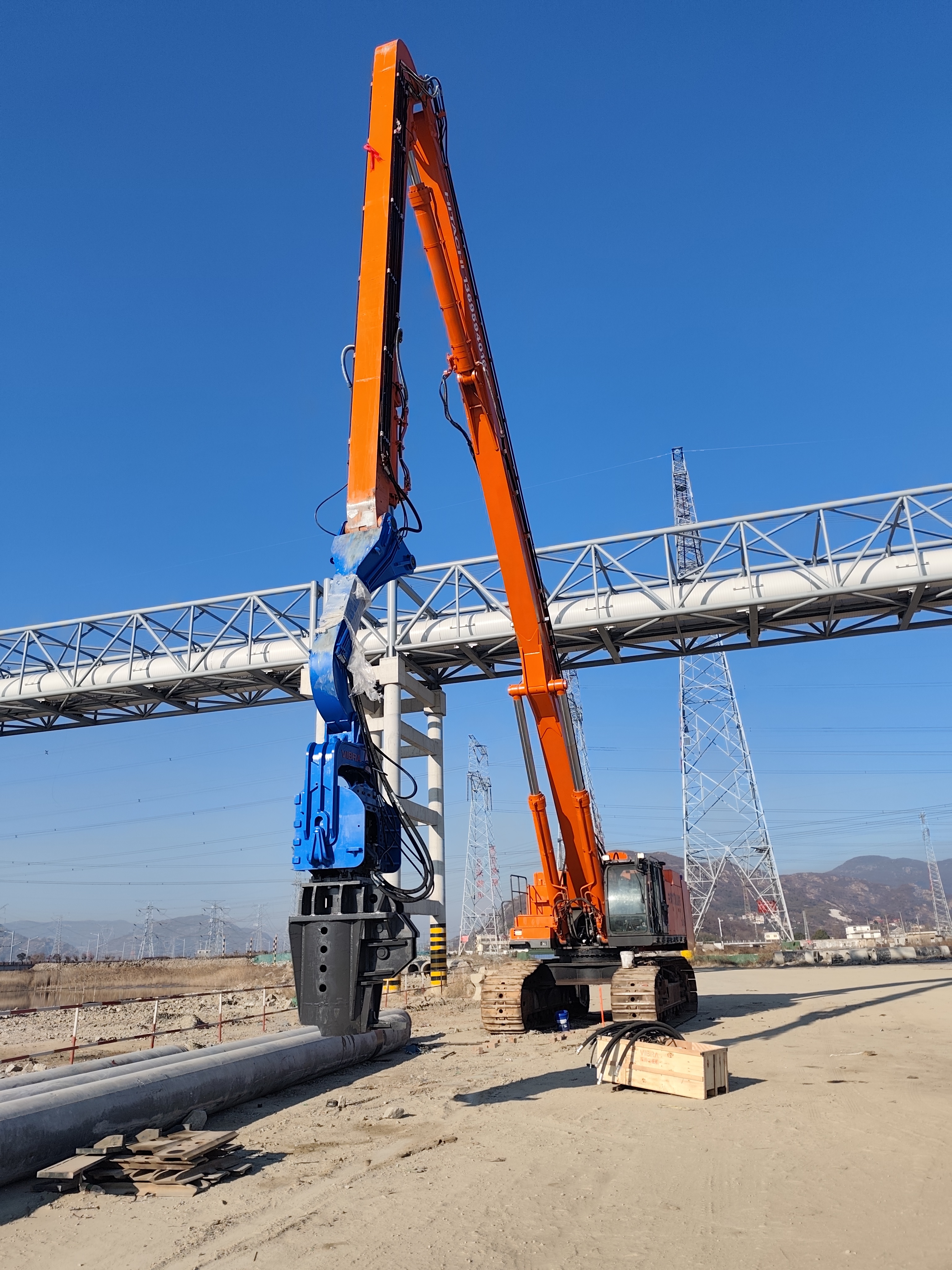 | Resaltar | Hincador de pilotes fotovoltaicos para pilotes de cemento,Hincador de pilotes para excavadora de 50-65 toneladas,Hincador fotovoltaico compatible con HITACHI |